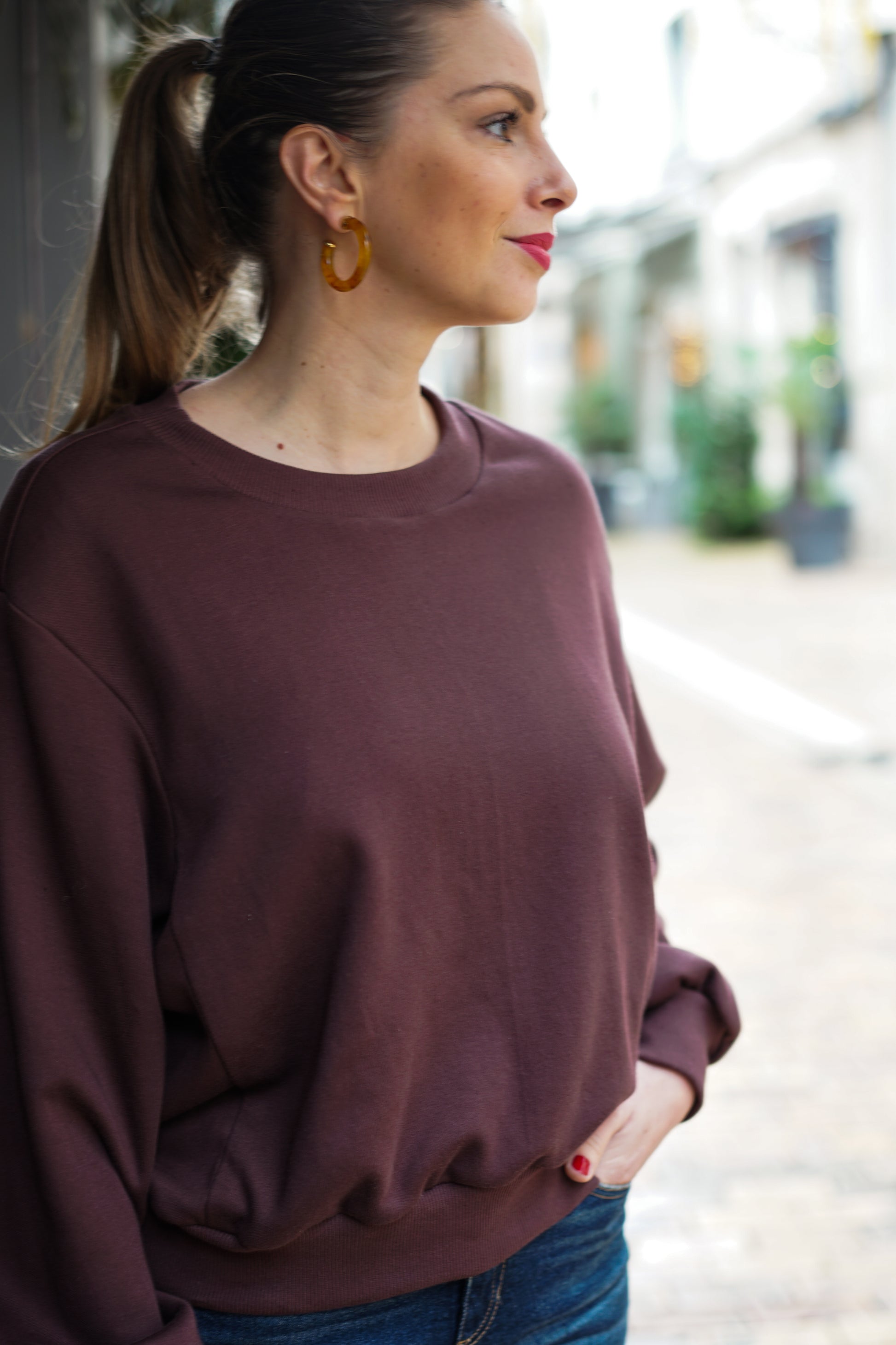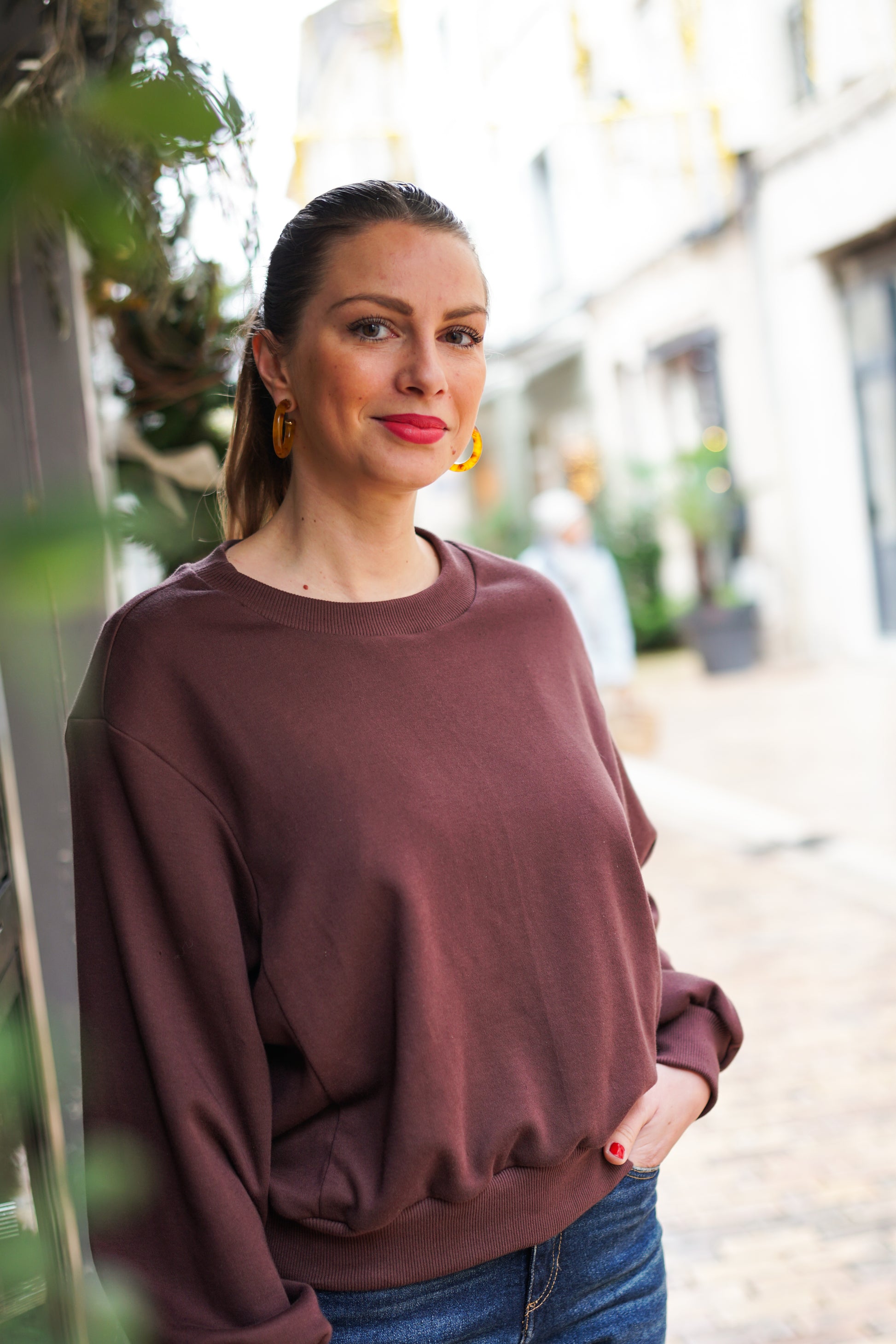 Coupe oversize, douceur enveloppante et style intemporel : le sweat Gabin revient dans une couleur exclusive en Marron , la grande tendance de la saison !